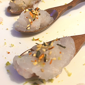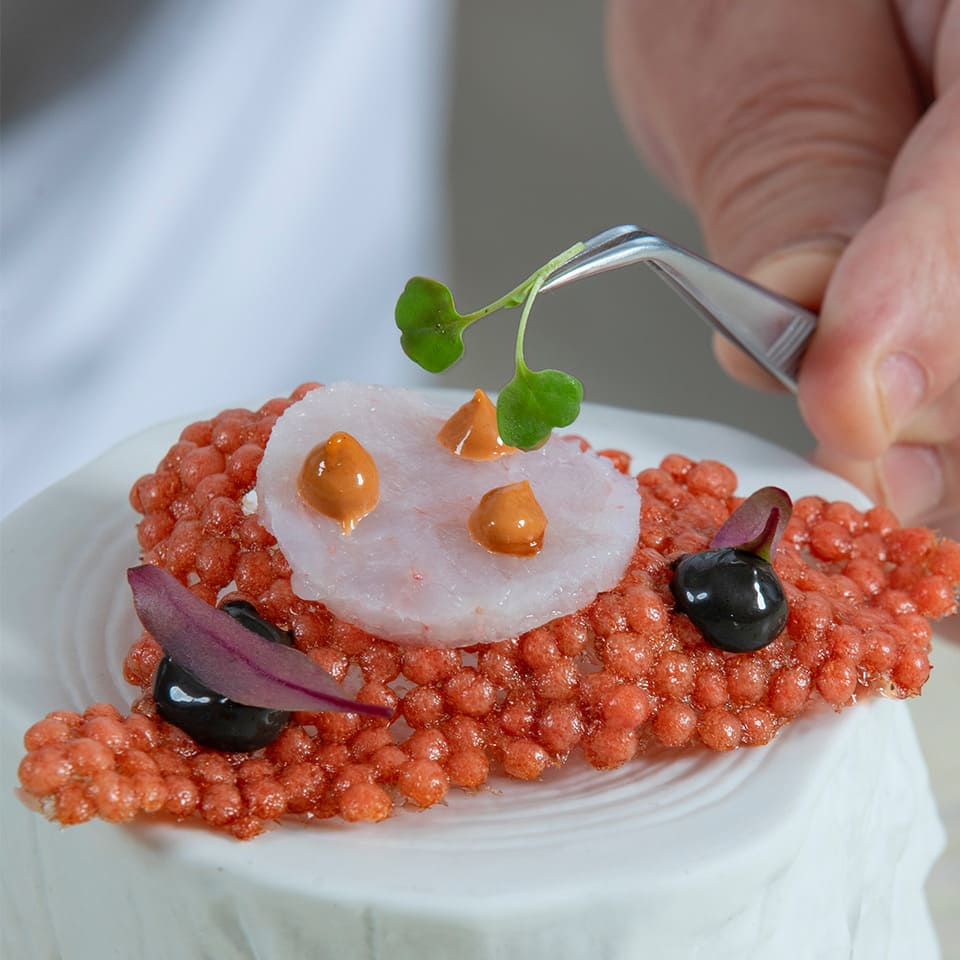 Todo el sabor del Mediterráneo en un bocado, crujiente y cremoso. Todo el sabor de la cabeza de la gamba roja de Marufina, integrada en una jugosa bechamel con un sabor inigualable. Un rebozado de panko super crujiente, una textura extremadamente fina y jugosa. Asi es...